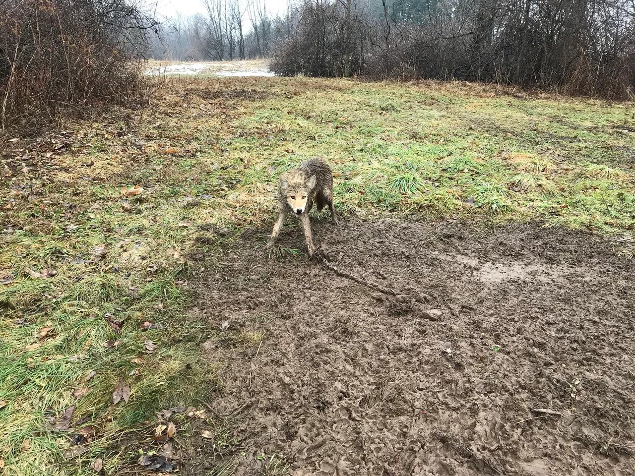 New housing development in the Victor, NY area was having issues with a pack of very aggressive and bold coyotes. This Fox was an incidental catch. It was checked over and released back as it was not the target species in this situation. This is the beauty of modern traps! They simply hold the animal by the foot until we arrive. The animals are unharmed and able to be released if necessary.